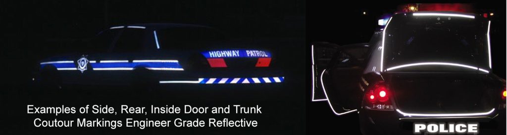 1. Contour Markings: Outlining vehicle boundaries with retroreflective material can improve visibility. Contour markings help drivers detect the full size and shape of an emergency vehicle. Approaching drivers recognize the type vehicle quicker when presented with contour markings versus just a single strip of reflective tape. Quicker recognition equates to quicker response time.